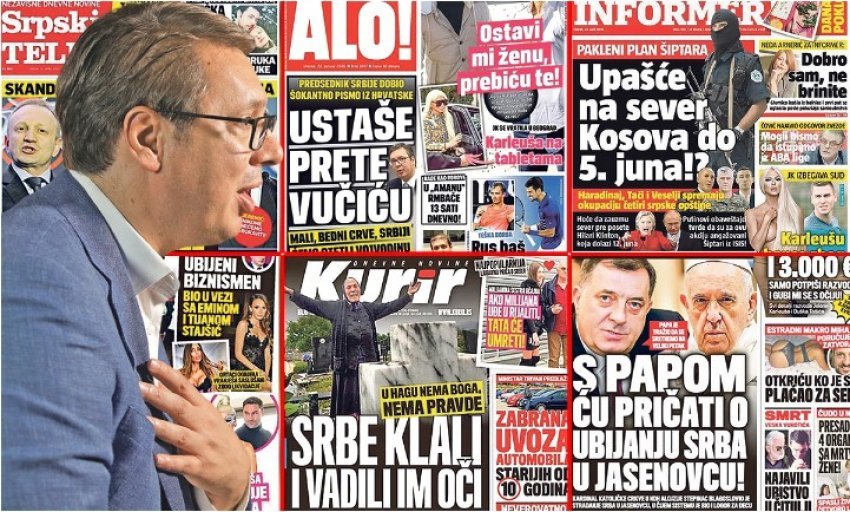 Këta tituj edhe mund të duken qesharakë, por nuk është fjala për një dukuri margjinale, sepse kjo "makineri e urrejtjes" a "grushti goditës i Vuçiqit" arrin tirazh të përbashkët ditor prej rreth 350 mijë ekzemplarësh! Mund të merret me mend se çfarë opinioni krijojnë ato ndër serbët e rëndomtë, duke i mbajtur vazhdimisht në gjendje të psikozës së luftës dhe në armiqësi me fqinjtë? Dhe, se për çfarë "normalizimi të marrëdhënieve" angazhohet Vuçiqi, deri sa urrejtja që zjen ndaj shqiptarëve dhe kërcënimet se "do të vijnë rusët" dhe gjithçka të kthejnë siç ka qenë - janë opsesion i përhershëm i medieve të Beogradit.